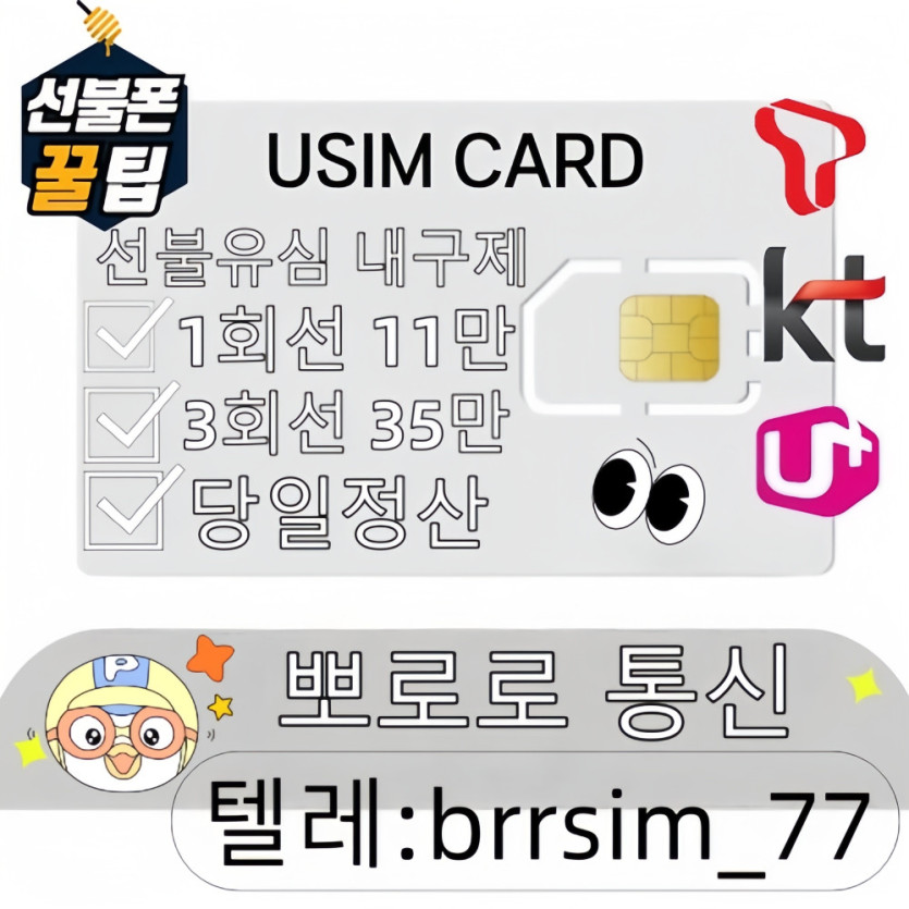 텔레그램:@brrsim_77 선불유심내구제 돈 드려요 !! 바로 개통 → 개통 확인 후 바로 정산1회선 11 / 최대 35가능 소개시 소개비 3~5지급 뽀로로 통신