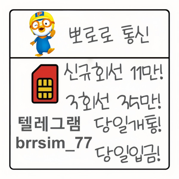 텔레그램:@brrsim_77 선불유심내구제  돈 드려요 !! 바로 개통 → 개통 확인 후 바로 정산1회선 11 / 최대 35가능 소개시 소개비 3~5지급 뽀로로 통신